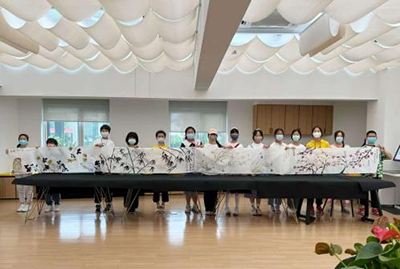 效果:通过90分分钟的绘画练习学员们配合完成6.7米国画(梅兰竹菊长卷)绘制,效果