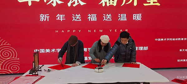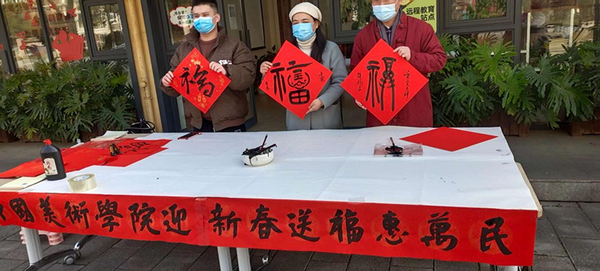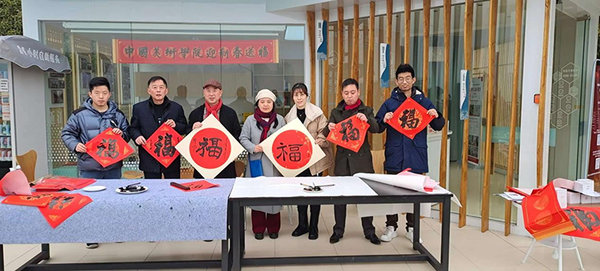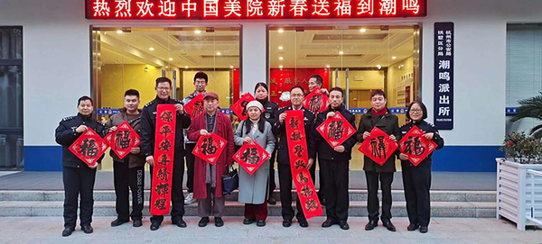 中国美术学院继续教育学院党建品牌“中华优秀文化进万家”精品项目第五站--“新春送福”活动。到杭州四个党群服务中心。分别是望江街道党群服务中心、闸弄口街道党群服务中心、新天地党群服务中心、凯益会党群服务中心,以及杭州潮鸣派出所送“福”。