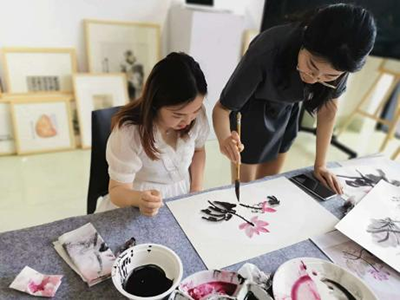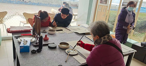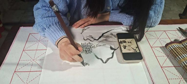 课程根据各街道特色,差异化进行临摹创作山水、花鸟作品