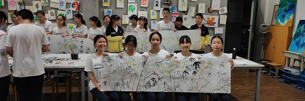 效果:通过90分分钟的绘画练习学员们配合完成6.7米国画(梅兰竹菊长卷)绘制,效果非常优异
