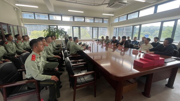 竺照轩院长向来访官兵介绍了学校发展情况以及社会美育未来可期的合作项目,方奇斌教导员对中国美术学院在文化自信、艺术创造、社会美育等方面的引领作用表示了充分肯定,同时期待未来与中国美术学院在继续教育、社会美育、军民共建等开展更多更深层次的交流活动。