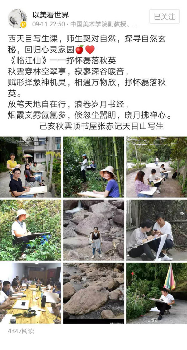 同学们在张赤老师的带领下在天目山进行写生实践,沐浴大自然的恩泽。