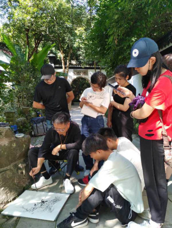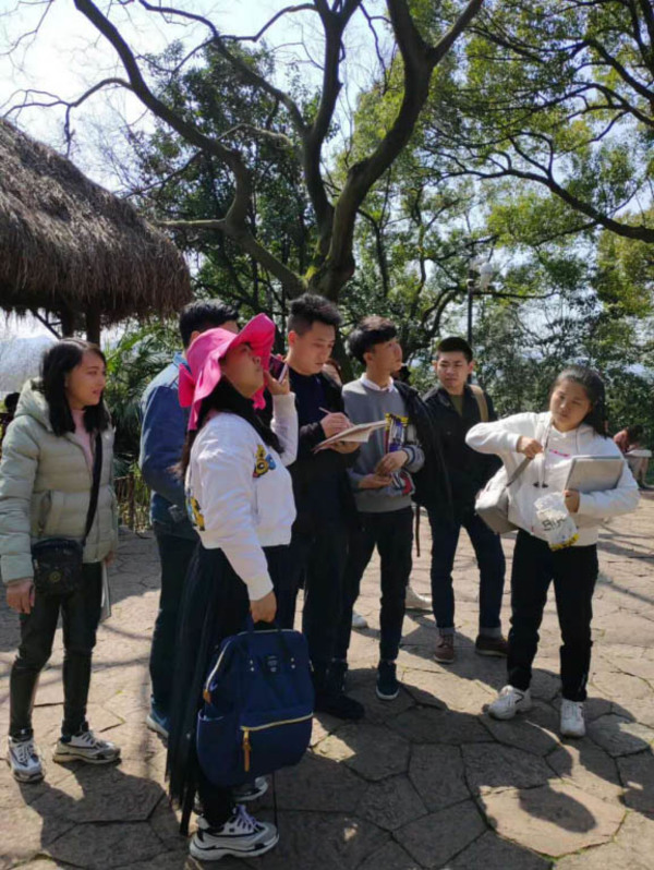 余博老师带领下,大家在虎跑公园进行园林写生实践。