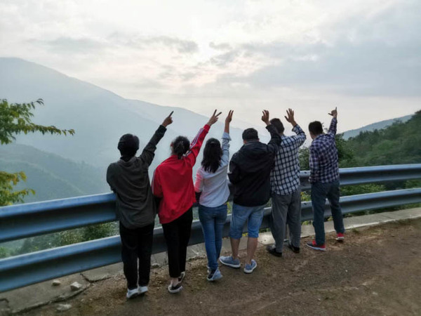 礼敬自然,习养博大心胸,团队在大山深处,迎接旭日召唤