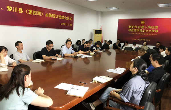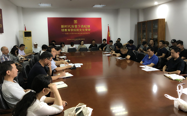 安滨院长首先向全体教职员工传达了中国美术学院中层干部读书会会议精神。分别解读了读书会上钱晓芳书记的《站高位找差距 高质量铸一流》报告、高世民副院长“双一流”中期检查自评报告及王赞副院长关于金课、“双万计划”的工作要求与动员以及许江院长在中层干部会议的总结报告等内容。之后对继续教育学院新学期的工作内容与要点进行了部署。