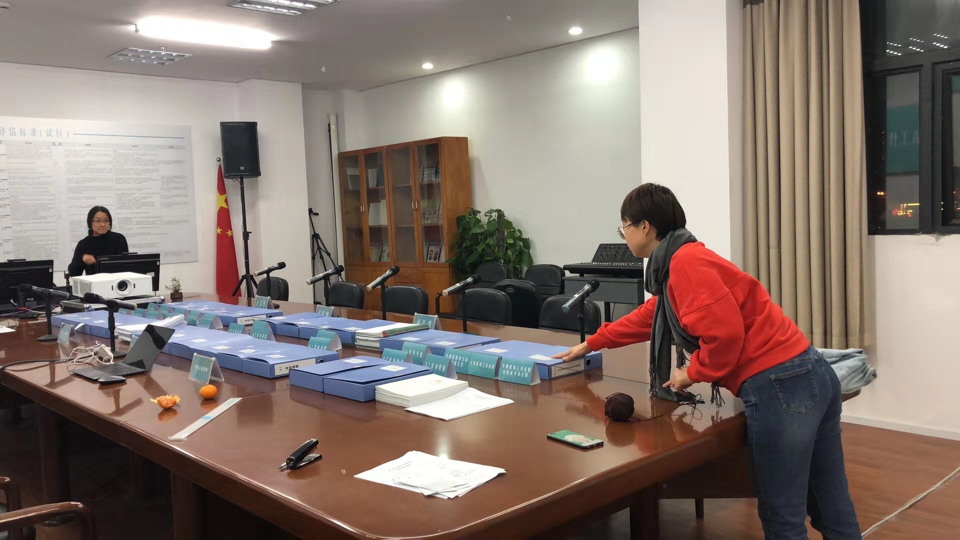 工作人员整理评估资料