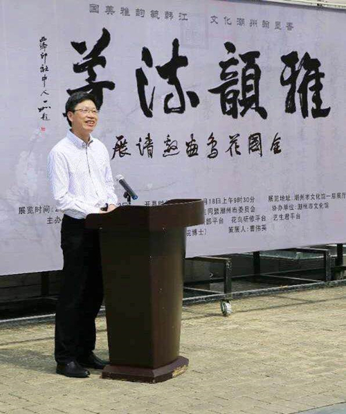 出席本次画展开幕式的有?潮州市政协副主席、民盟潮州市主委、潮州市文学艺术界联合会主席、韩山师范学院美术与设计学院院长、潮州市文化馆馆长、潮州画院院长等地方党政领导和书画家,韩山师范学院的师生等。我院张东华老师向潮州市民盟、潮州文化馆、韩山师范学院等单位赠书赠画。本次画展共有50多位画家的80多件作品参展,内容包括花、鸟、虫、草,工笔、写意、没骨齐全。大部分作品为首次亮相,也有部分作品为全国墨竹展和浙江省女画家协会画展入选和获奖作品。中国美院原常务副院长、教授,浙江现代画院院长高法根为支持本次展览发去贺信,祝贺全国花鸟画邀请展在潮州开幕。开幕式结束后,参展画家考察了潮州市文化古迹并开展写生活动。