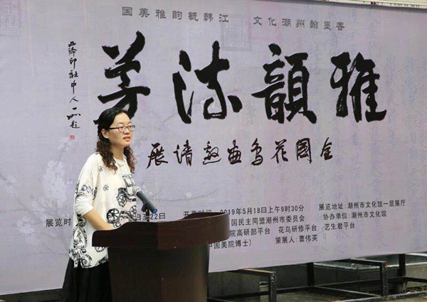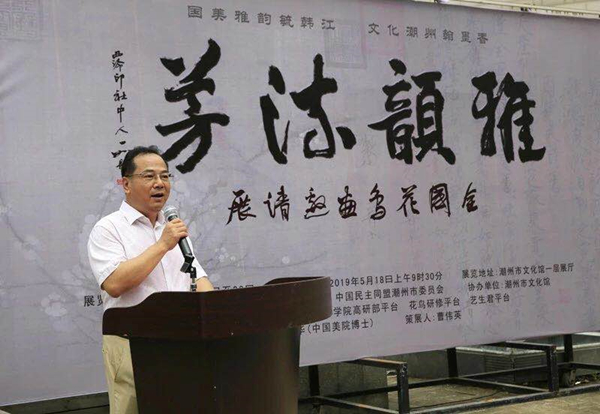 由中国美术学院2018届花鸟画变体临摹与创作高研班师生作品为主体,同时邀请历届同学共同参与的“雅韵流芳——全国花鸟画邀请展”,2019年5月18日上午9:30 在潮州市文化馆顺利开幕。