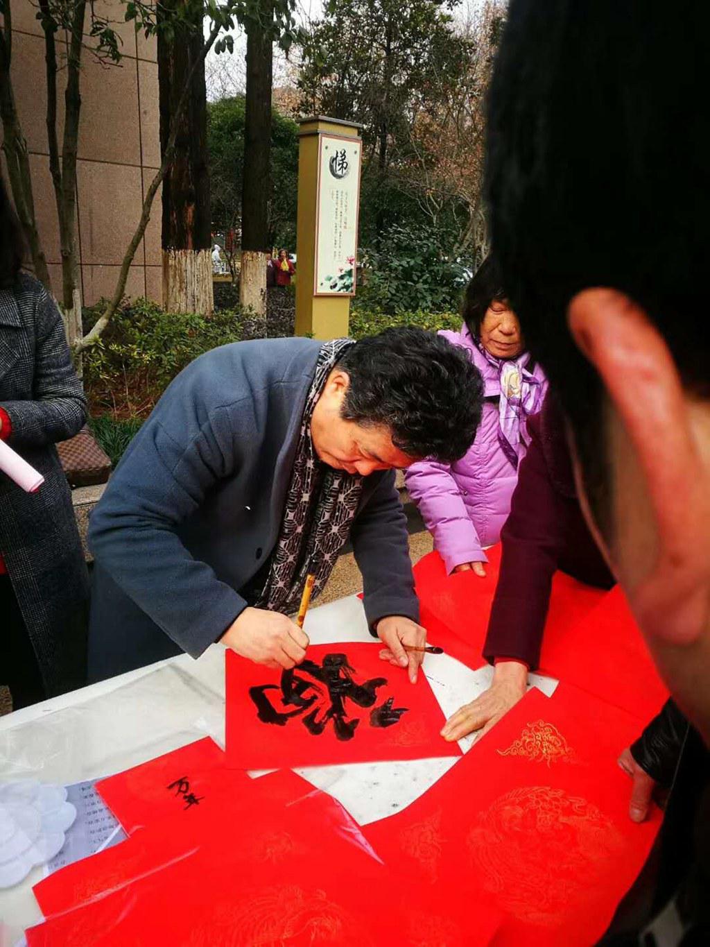 社区基层党员、民间书法家、志愿者们一起开展了书画送福、剪纸迎新等志愿活动。