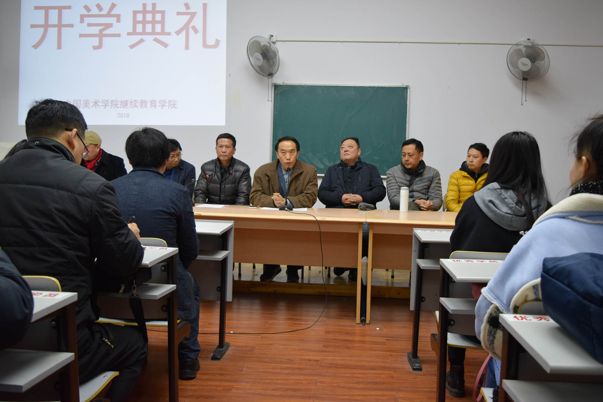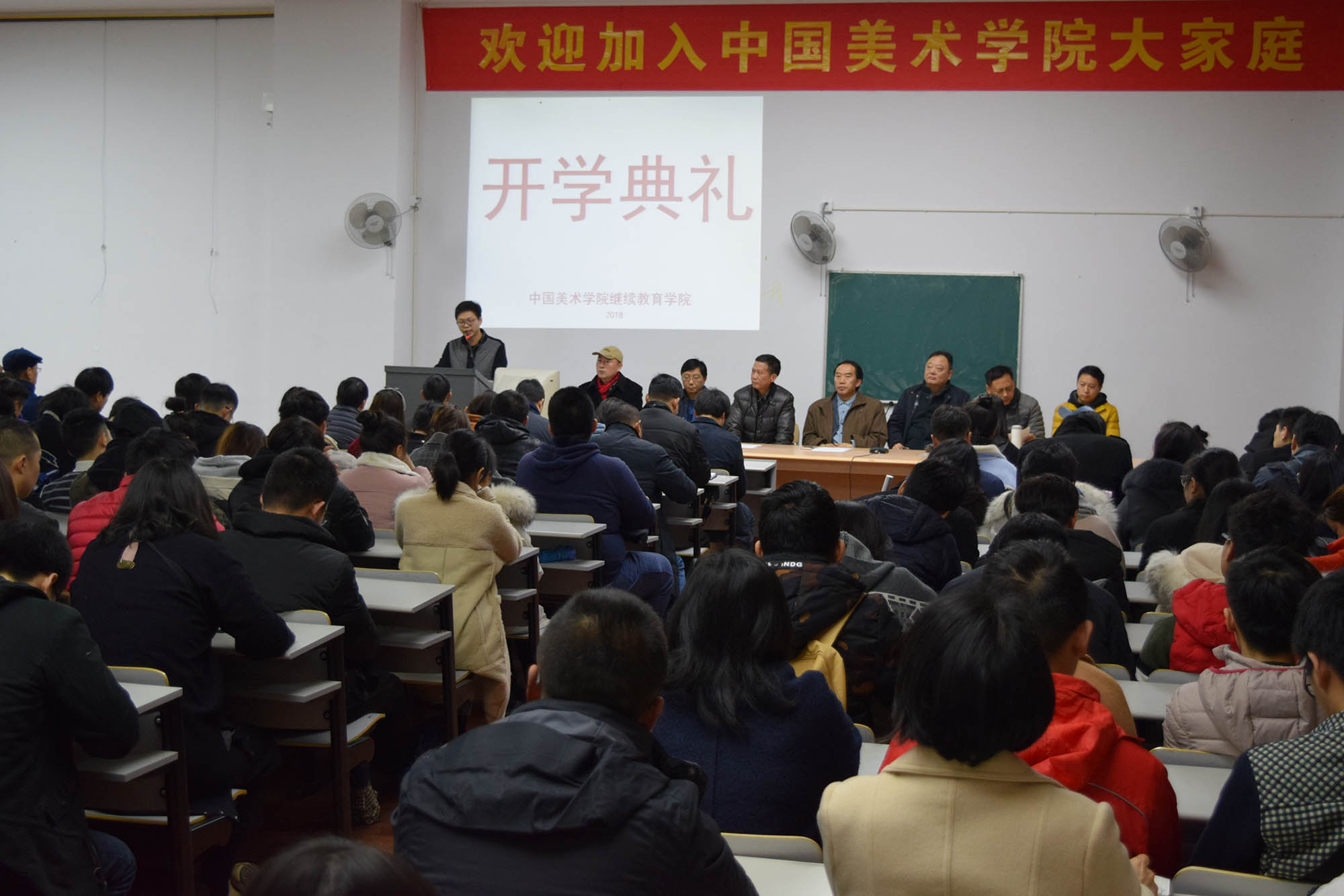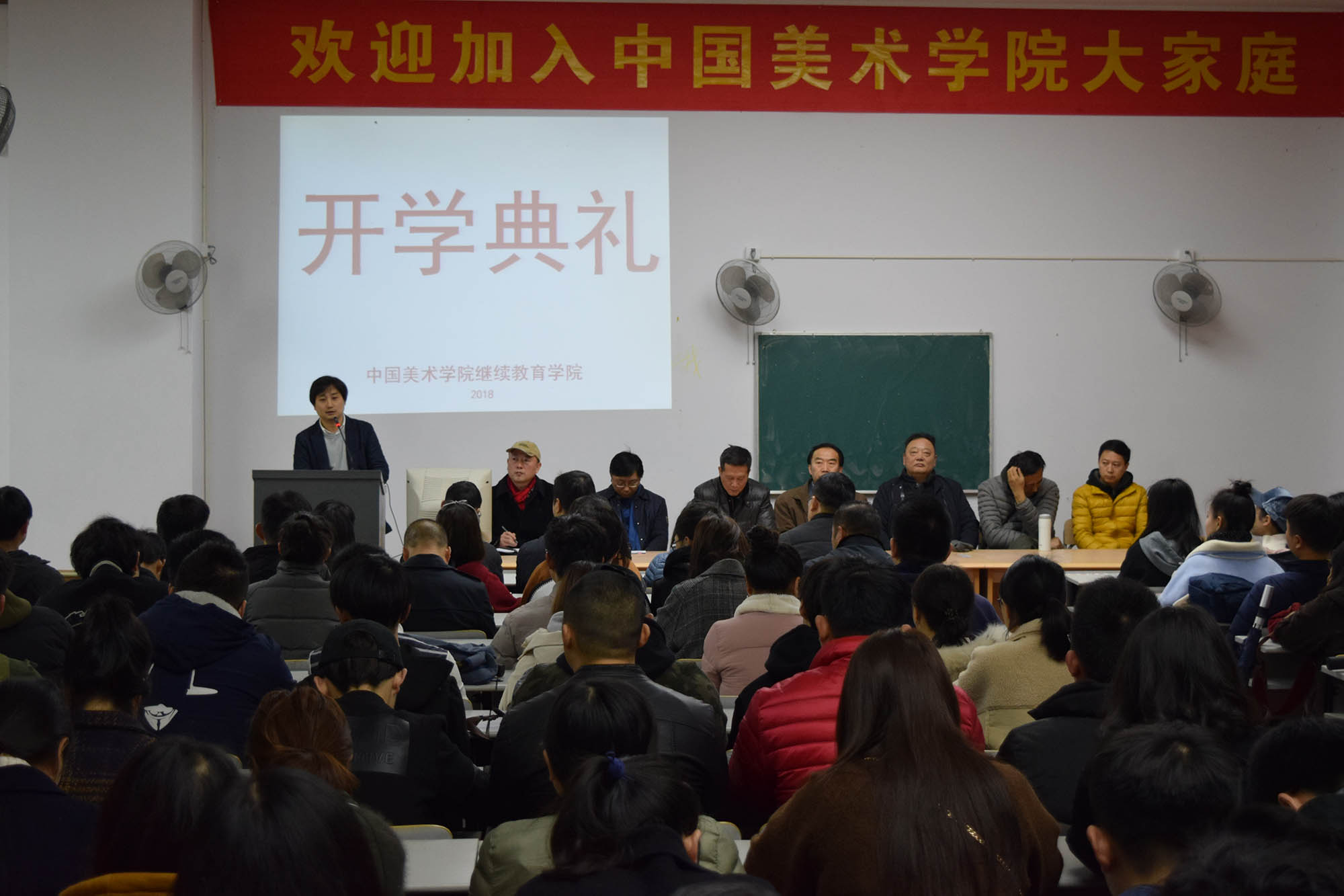 金鸡交好卷,瑞犬送佳音。2018年3月7日上午10点,继续教育学院新生开学典礼在一楼公共课教室隆重召开,出席开学典礼的领导有继续教育学院院长安滨、党总支书记黄学和、中国画系主任范晓文、书法系主任吕金柱、视传系主任徐兵、教务办公室主任杨麟、学工办主任张楠、高研部主任陈明坤、各职能办公室主任,各任课教师及2018届489名新生。会议由黄学和老师主持。