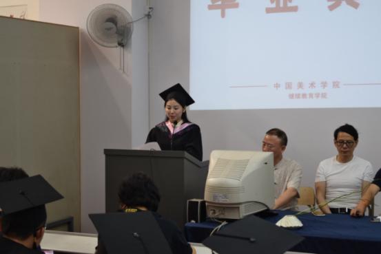 毕业典礼在庄严的国歌声中拉开帷幕,安滨院长代表继续教育学院致词:安院长说这是一个值得纪念的日子,祝贺毕业生们圆满完成学业。搬入新校园后,学院的各项工作得到不断提升,高研部和师训部等学院开创的各项工作,在全国都取得很好的反响,成绩喜人!学历生是中国美术学院继续教育学院各项教学工作的核心,2017届176名毕业生中,获得学士学位有110名,获得学位人数再创新高!希望即将离开校园的毕业生们怀揣入校时的梦想,在今后的事业中发挥自身潜能和个人优势,走出各自的精彩人生。望毕业生们在以后的工作和生活中学会担当,要有一个正面的态度,回报家人、回报社会。在自己的事业拓展中积极探索,持之以恒。最后祝愿所有的毕业生前程似锦,为社会的发展贡献自己的才华与智慧!在愉快的气氛中,安院长结束了精彩的发言。