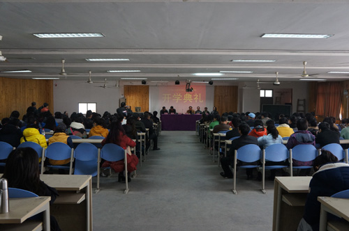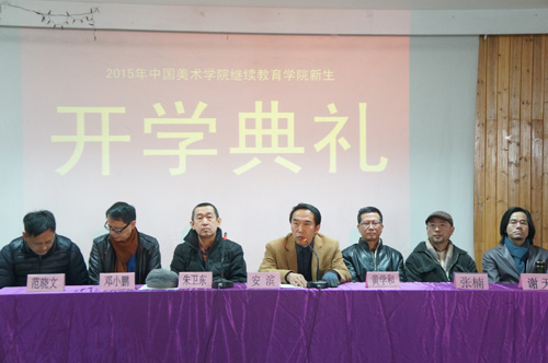 阳春三月,樱花灿烂,伴随着温和的阳光继续教育学院2015级新生开学典礼于3月11日上午10点在B楼阶梯教室隆重召开,出席开学典礼的领导有继续教育学院院长安滨;党总支书记黄学和;副院长朱卫东;设计部、自考部主任邓小鹏;国画教研室主任范晓文;环艺教研室主任谢天;各职能办公室主任;各任课教师及2015级新生420余人。会议由朱卫东老师主持。