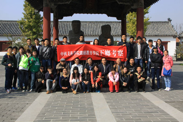1022日、23日上午,孙书记一行分别赶到泰安岱庙碑林与曲阜孔庙碑林,看望了在那里下乡考察的书法专业的继续教育学院师生。当孙书记一行突然出现在学生面前时,师生们感到非常高兴。下乡带队教师吕金注老师向孙书记和继续教育学院领导介绍了教学考察线路的安排,教学内容及下乡目前的各方面情况。孙书记在教学考察现场边与学生一起听取专业老师对碑刻的讲解,边和师生进行交流。同时仔细了解学生考察期间的住宿、学习和生活情况。随后在现场孙书记发表热情洋溢的讲话:他首先向同学们表达学院党委对下乡师生的问候;其次很高兴能在我国传统文化重地——儒家文化发源地进行与大家见面并交流,也很羡慕大家能以游走名胜古迹的方式进行专业学习与自我的提升;他告诉学生要珍惜下乡机会,深入考察、认真学习,细心与传统对话,与历史交流,不断增强民族文化的自信心与归宿感,要结合实践、学以致用,多出力作;同时也提醒学生,外出考察要加强集体观念,按考察计划配合老师的安排与工作,同学之间要相互关心与爱护,注意人身安全及相关考察重要内容的研究和收集。最后孙书记一行与学生在轻松愉快的环境里一起合影留念。