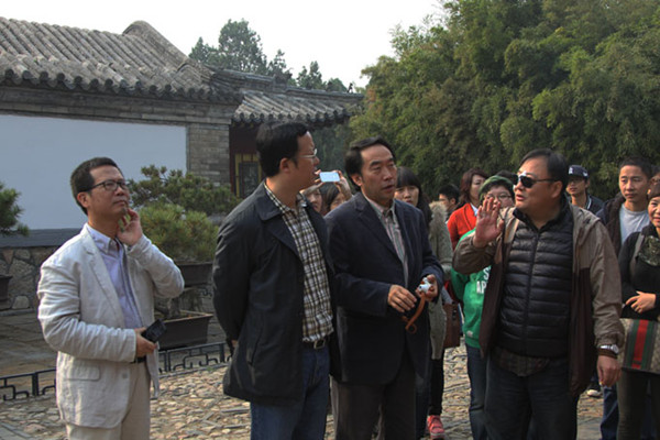 10月22日、23日上午,孙书记一行分别赶到泰安岱庙碑林与曲阜孔庙碑林,看望了在那里下乡考察的书法专业的继续教育学院师生。当孙书记一行突然出现在学生面前时,师生们感到非常高兴。下乡带队教师吕金注老师向孙书记和继续教育学院领导介绍了教学考察线路的安排,教学内容及下乡目前的各方面情况。孙书记在教学考察现场边与学生一起听取专业老师对碑刻的讲解,边和师生进行交流。同时仔细了解学生考察期间的住宿、学习和生活情况。随后在现场孙书记发表热情洋溢的讲话:他首先向同学们表达学院党委对下乡师生的问候;其次很高兴能在我国传统文化重地——儒家文化发源地进行与大家见面并交流,也很羡慕大家能以游走名胜古迹的方式进行专业学习与自我的提升;他告诉学生要珍惜下乡机会,深入考察、认真学习,细心与传统对话,与历史交流,不断增强民族文化的自信心与归宿感,要结合实践、学以致用,多出力作;同时也提醒学生,外出考察要加强集体观念,按考察计划配合老师的安排与工作,同学之间要相互关心与爱护,注意人身安全及相关考察重要内容的研究和收集。最后孙书记一行与学生在轻松愉快的环境里一起合影留念。