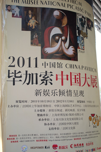 上海浦东世博中国馆展出的毕加索画展,涵盖了西班牙现代派绘画大师毕加索Pablo Picasso自1895至于1970年代各个时代的创作共60余幅作品,其中包括画家14岁青少年时间的古典绘画、蓝色时期、粉色时期、立体主义、古典希腊风格、表现主义及晚年的自画像。展览中穿插了部分文献资料和大量毕加索生前珍贵的艺术活动的图片照片,使我们对毕加索创作有较为全面的了解。