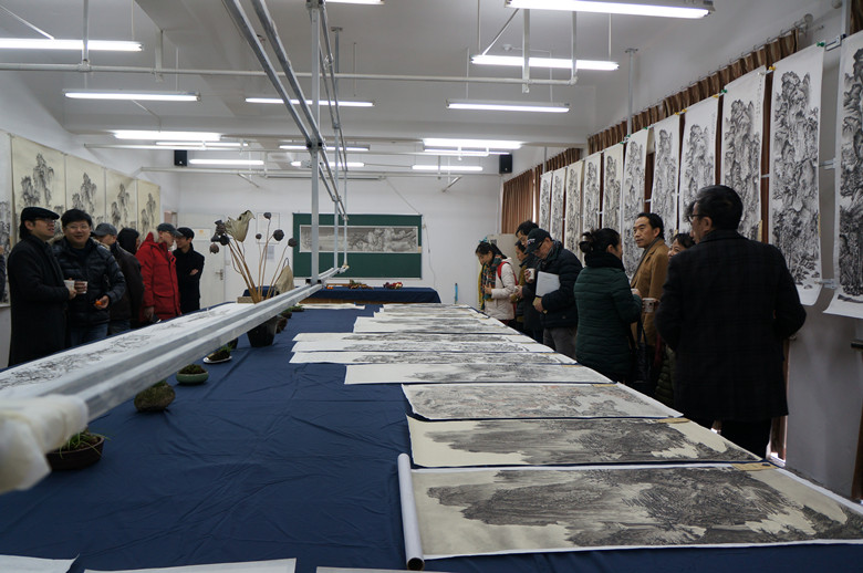 此次检查由安滨院长带队,各系主任以及全体专业教师参加,从高研部各专业开始逐班进行了检查。重点对学生的各段教学课程的掌握情况及教师的教学常规工作进行了观摩,此次教学检查涉及到学历生四个年级近三十个班、两个毕业班以及高研研修进修十多个班的本学期的两段课程作业。检查过程中,各系主任及任课教师介绍了本学期各个阶段课程的教学计划、目标及教学进展情况。从整体教学质量观测,各专业教学成果都有亮点,成绩突出。特别是高级研修部、中国画系、书法系、视传系、环艺系教学成果丰厚。安滨院长针对不同班级的教学做了具体分析,并在检查过程中点出了部分优秀作品,对教学效果突出的班级给予充分肯定。检查结束后,学院召开了期末教学检查总结会议。