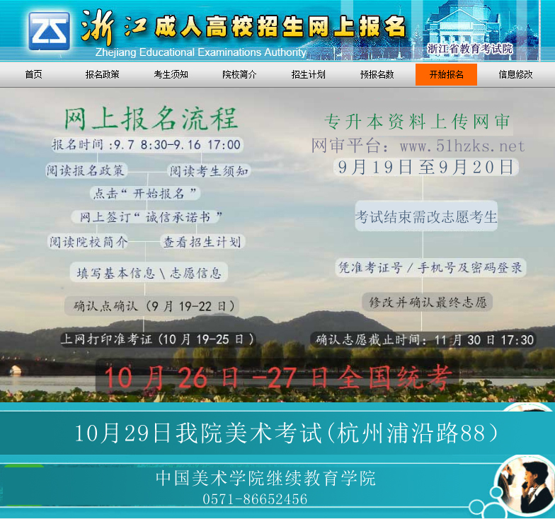 浙江省成人高考报名考试步骤:
