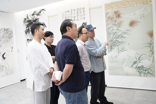 6月12日,中国美术学院党委书记、博士生导师金一斌教授莅临惠民路上城区文化馆美术馆,在办公室主任李都金、学工部部长竺照轩的陪同下,兴致勃勃地参观了“六月芳菲——2022年中国美术学院春季高研结业展”。 在继续教育学院院长安滨、书记韦海洋、副院长杨安和高研部主任周峰的导览下,金一斌书记仔细询问高研的教学开展情况、结业作品的辅导及完成过程,并饶有兴致地对作品一一进行评析,展览呈现出来的整体艺术水准给予首肯,同时也指出了可提升、改进之处。金一斌书记指出,高研班结业展览放在上城区文化馆,是校地文化共建精神共富的生动实践和成果体现。他希望进一步加强高研工作,一方面将其作为校友会工作的重要内容,激发校友能量,同时也以高研班为依托,为社会美育做出积极贡献。