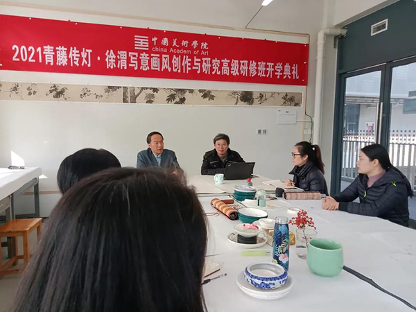 11月22日,寒风瑟瑟,正是小雪时节,由中国美术学院承办的首届“青藤传灯”——徐渭写意画风创作与专题研究高级研修班在中国美院象山校区开学了!来自全省各地的十几位写意画爱好者济济一堂。