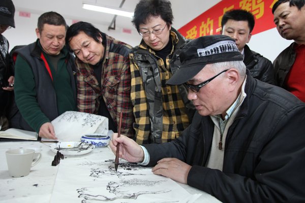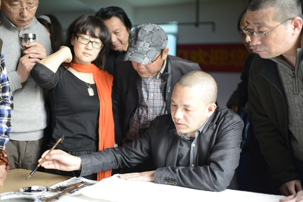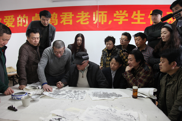 3月24日/星期一,下午2点,当首届创研班学员进行第一阶段的传统树石法笔墨训练时,卓鹤君导师便亲临教室为所有学员的树石作业一一点评并且亲自动笔为每一位学员修正一个个细小的笔墨错误。导师对学员们学业的深切关注,对作业细心而又严谨的修正,让所有学员深感卓老谦和的人格魅力以及严谨的治学态度,他们从卓老和蔼可亲的笑容中感受到艺术大家的风范、更从卓老使笔用墨的娴熟动作中亲眼见证了他笔墨精微、行止得体的山水画功底。课间,学员们纷纷感叹到:杭州国美之行——超值!