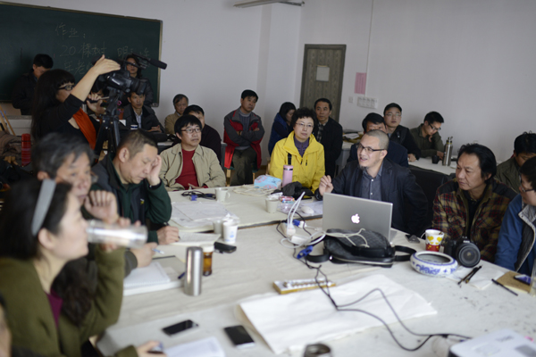 3月25日/星期二,上午9点,著名山水画家、中国美院国画系教授张捷先生被邀请为卓鹤君山水画创研班全体学员作了一次题为《中国山水画的学理认知》的学术讲座,其内容翔实,论点精到,脉络清晰的讲座学术性很强,显示了张捷教授研究传统山水画立意的高度,也显示了张教授近年来对传统绘画的一次精深梳理。这个讲座对于正处在学习传统树石法并努力从中汲取养料的学员们无疑是一场及时雨。学员们从讲座中学习到许多之前没有涉及过的山水画理论和绘画法则,从张捷教授的大量图解中,又一次感受到山水画精深而又朴素的画理,为此阶段的“传统回归”的学习增添了更俱指导意义的内容。