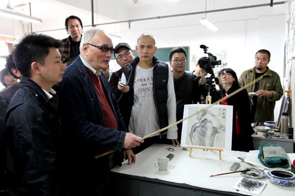 (3)陈磊教授在树石法课程中细心传授了传统山水画临习的要诀,解析了宋元各大家的笔法特点、风格特征以及欣赏要素,为学员们作了细致的示范,他丰厚的传统绘画知识打开了学员们的眼界。