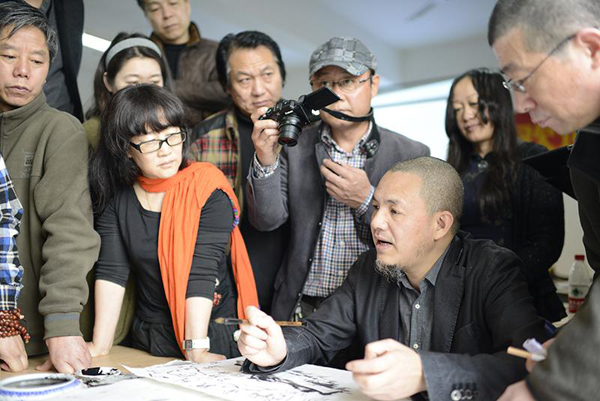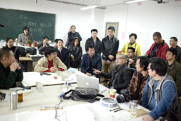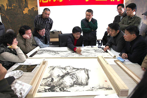 (4) 王作均作为主导教授,他设置的总课程始终围绕着卓老“立足传统开我们户”的艺术思想,阶段性地朝立足传统、发掘自我、创立新我的方向推进。作均老师注重对画理本质的解读,注重以画说话,以他深厚的传统笔墨功底来解析画史上常存的笔墨误区。清晰的教学方法使学员们一目了然,少走弯路。 作为主教老师他每次上课都超时地为同学们做针对性的示范、讲解、总结,努力地做到因人施教,使每位同学的进步最大化,稳步地推进全班学习进展的大方向。