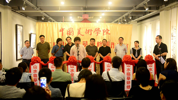 2013年6月26日上午10:00 ,“中国美术学院第二届山水临摹研修班毕业作品展”在杭州恒庐美术馆开幕,中国美院研究生处处长毛建波,中国美术学院继续教育学院院长安滨,副院长朱卫东,中国美术学山水临摹研修班学术主持林海钟和陈磊,中国美术学朱红、仁量、范晓文、张赤、王作均和周靑等老师,浙江画院山水工作室主任茹峰老师,以及山水临摹研修班班主任陈明坤老师等近200多人出席了开幕仪式。开幕式由中国美术学院继续教育学院副院长朱卫东主持。山水临摹研修学术主持林海钟、班主任陈明坤、学生代表刘剑飞先后发言,最后由中国美术学院继续教育学院院长安滨宣布画展开幕。