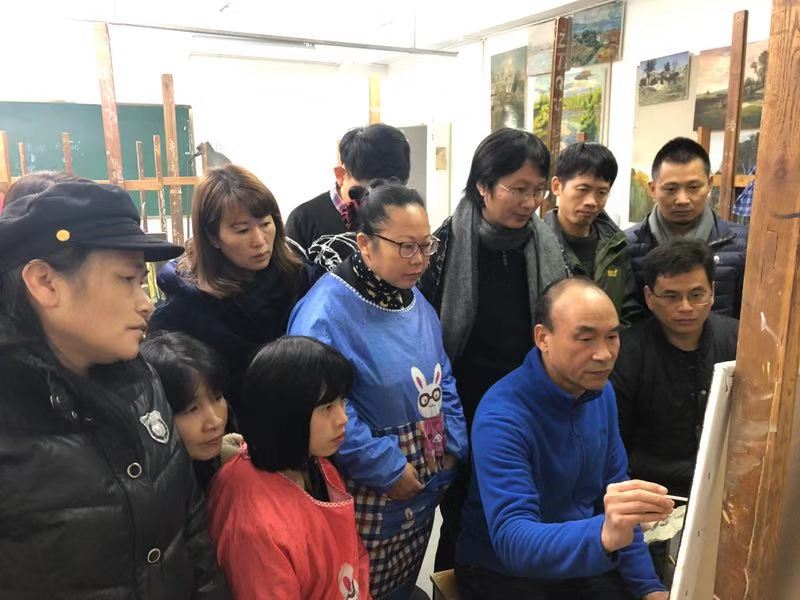 第四期黎川油画短训班学员在杭州中国美术学院继续教育学院学习已经两个月了。这期间有众多学院名师指导黎川油画班学员的专业学习。中国美术学院许江院长亲自为黎川班全体学生授课,在罗马尼亚油画大师巴巴油画作品展现场,许院长为学生讲解欧洲油画历史并具体分析和讲解巴巴大师的经典作品,学员们兴奋不已,在后来的教学课程中时常念起许院长的那一课。