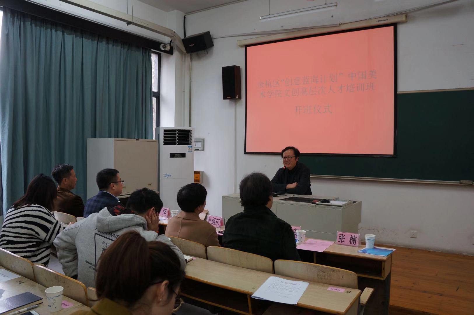 11月21日,由中国美术学院、余杭区文化创意产业办公室主办的“余杭区“创意蓝海计划”中国美术学院文创高层次人才培训班”开班仪式在中国美术学院象山中心校区2号楼207教室举行。
