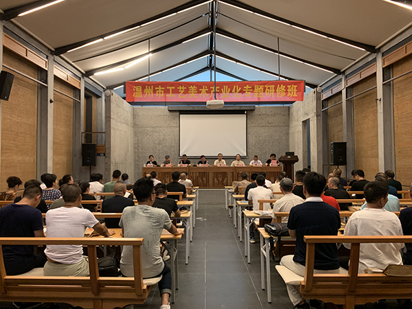 8月26日,由中国美术学院、温州市经济和信息化局主办,温州市工艺美术行业协会和温州市工艺美术研究院共同协办,继续教育学院承办的温州市工艺美术产业化专题研修班,在中国美术学院象山校区开班。本次培训班共有52位学员,包括10位省工艺美术大师、31位温州市工艺美术美术大师,还有非遗传承人、文化传统创新设计企业的负责人等。开班仪式在中国美术学院象山中心校区专家楼大会议室举行。