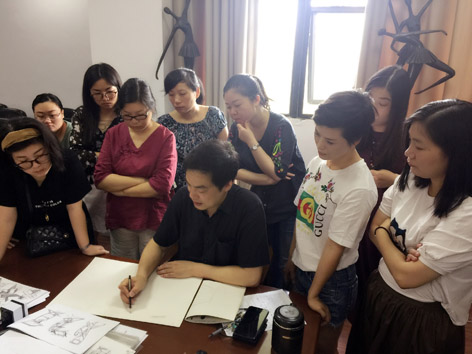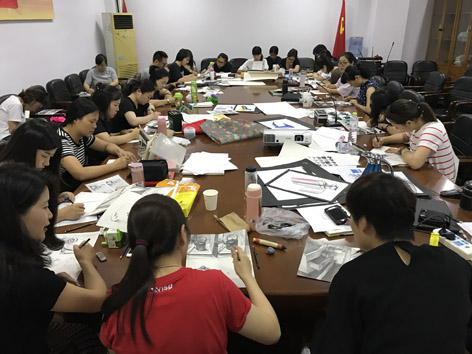 黄明东老师主导的《创意手绘产品在美术教学中的拓展培训》7月5日在中国美术学院继续教育学院师训部开课。该教学课题是由浙江省教育厅主办,中国美术学院继续教育学院承办的面向全省教师专业发展系列培训项目内容,从理论到实践所进行的系统教学。