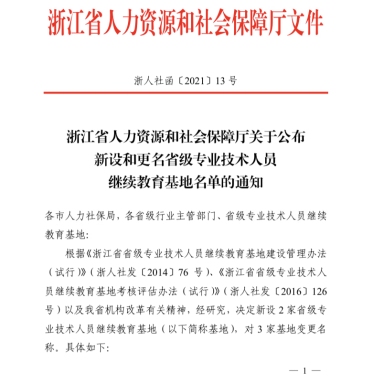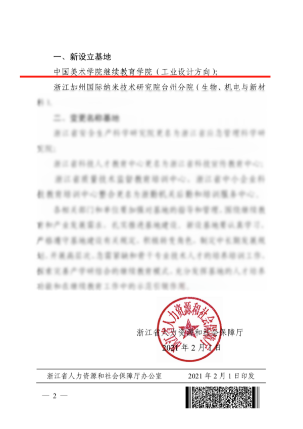 2021年2月2日,接到浙江省人力资源和社会保障厅下发文件,我院被批准为浙江省级专业技术人员继续教育基地(浙人社函[2021]13号)。中国美术学院继续教育学院作为工业设计专业技术方向的续教育基地,依托总院学科专业和人才资源优势,负责组织围绕工业设计产业方向的培训工作,将为我省工业设计产业人才的专业提升与研修构建重要平台。