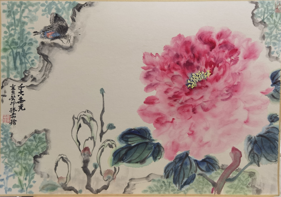 2022年3月作品《霞映吉羽天》,参加“瑞华丹青.壮美时代--第21届浙江省女花鸟画家作品展”由浙江省美术家协会、浙江省中国花鸟画家协会主办。